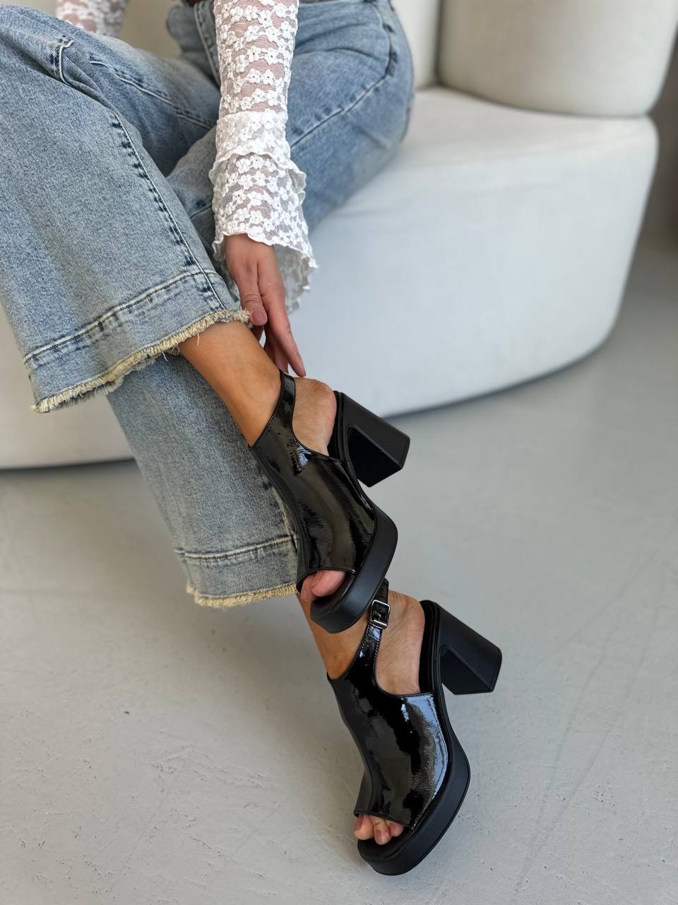 Босоножки "Линда" в черном лаке