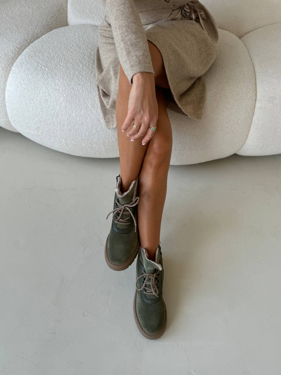 Ботинки зимние "Лайна" в цвете хаки