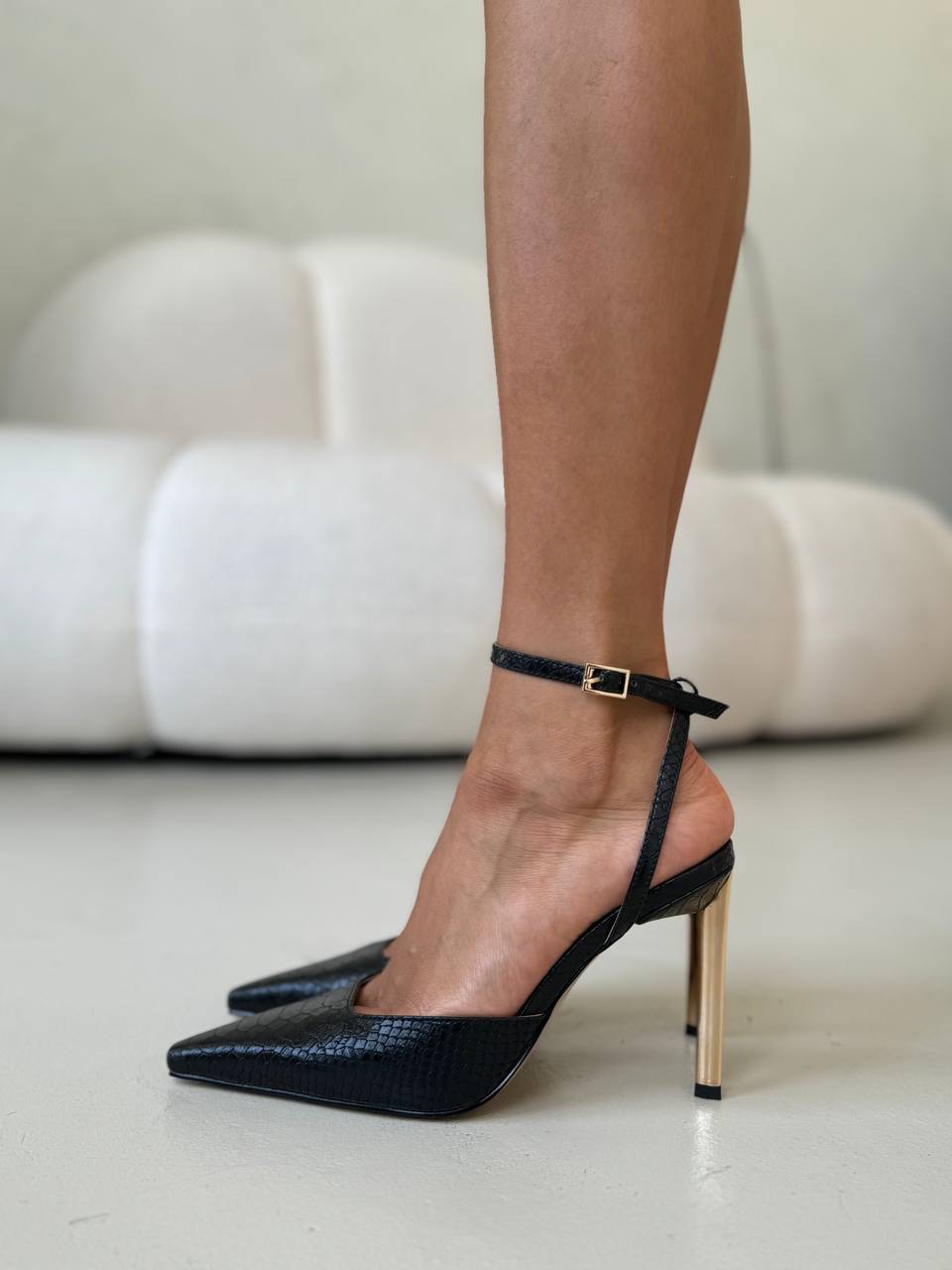 Босоножки "Мия" в черной рептилии