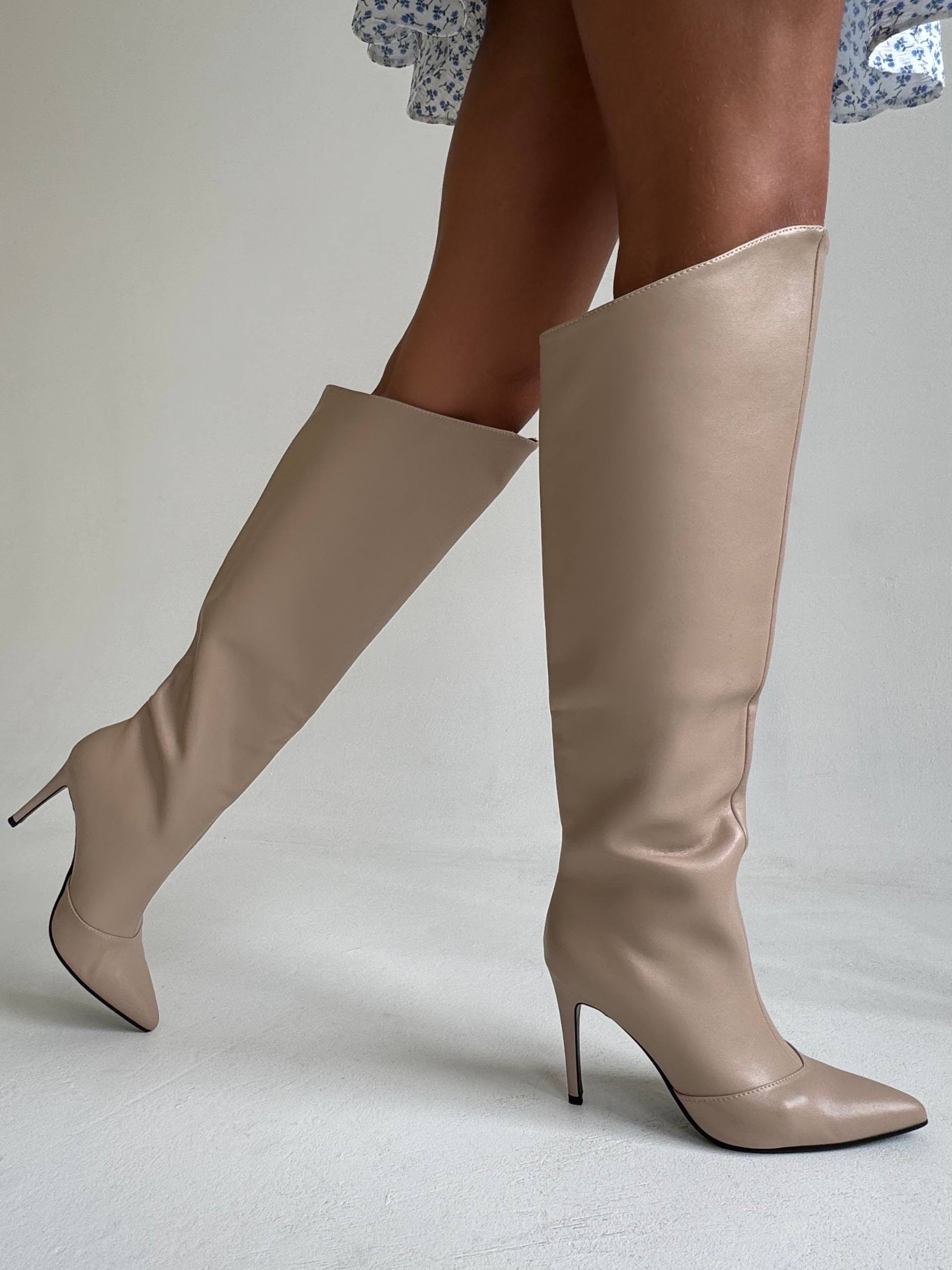 Сапоги “Донна” в бежевой коже