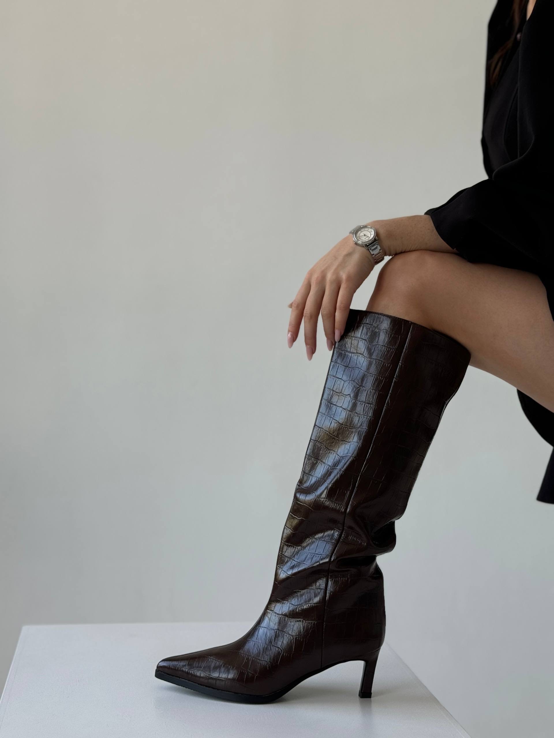 Сапоги зимние “Арин” в шоколадной рептилии